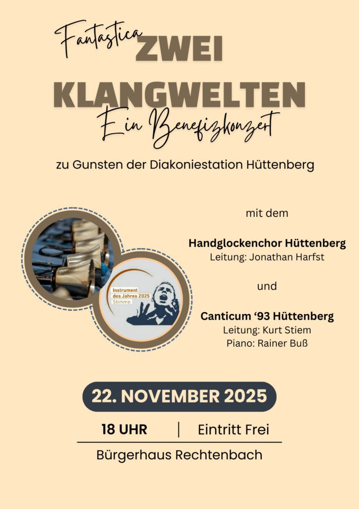 Herzliche Einladung zu unserem Konzert am 22. November 2025 gemeinsam mit dem Canticum ‘93 Hüttenberg.